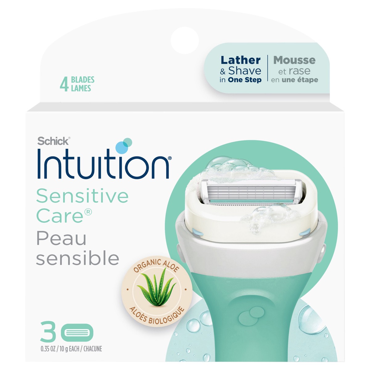 Schick Intuition Sensitive Care puts the shave cream right on the razor! Schick Intuition Sensitive Care refills are infused with 100% natural aloe and vitamin E, hypoallergenic, and pamper your sensi…