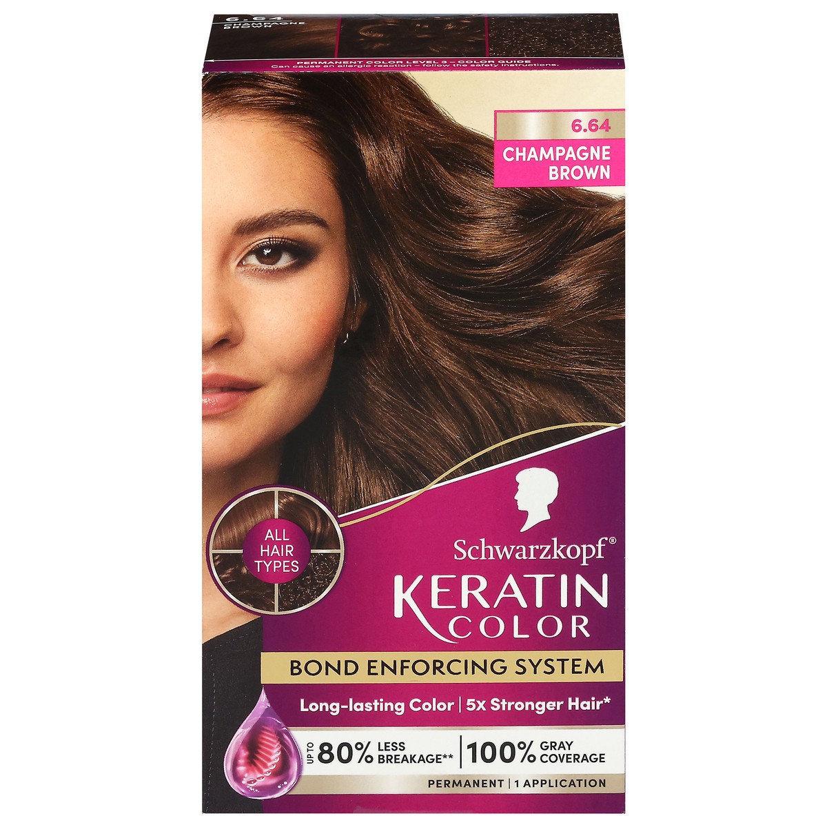 NEW! Schwarzkopf Keratin Color Permanent Hair Dye Color Cream, 6.64 Champagne Brown - professionally-inspired hair color for women. This permanent hair dye provides rich, striking color for all hair t…