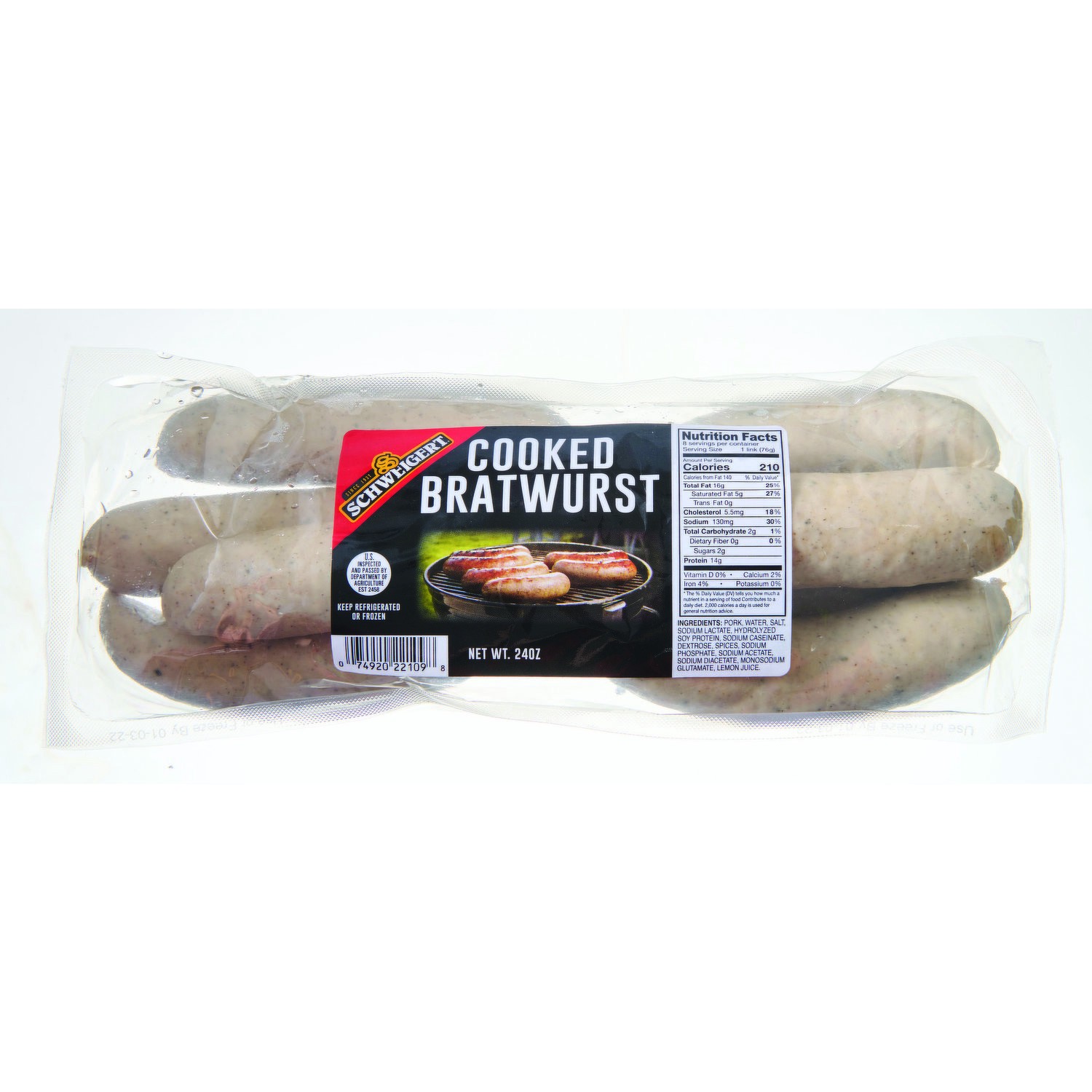 Schweigert Cooked Bratwurst, Natural Casing, 24 Ounce