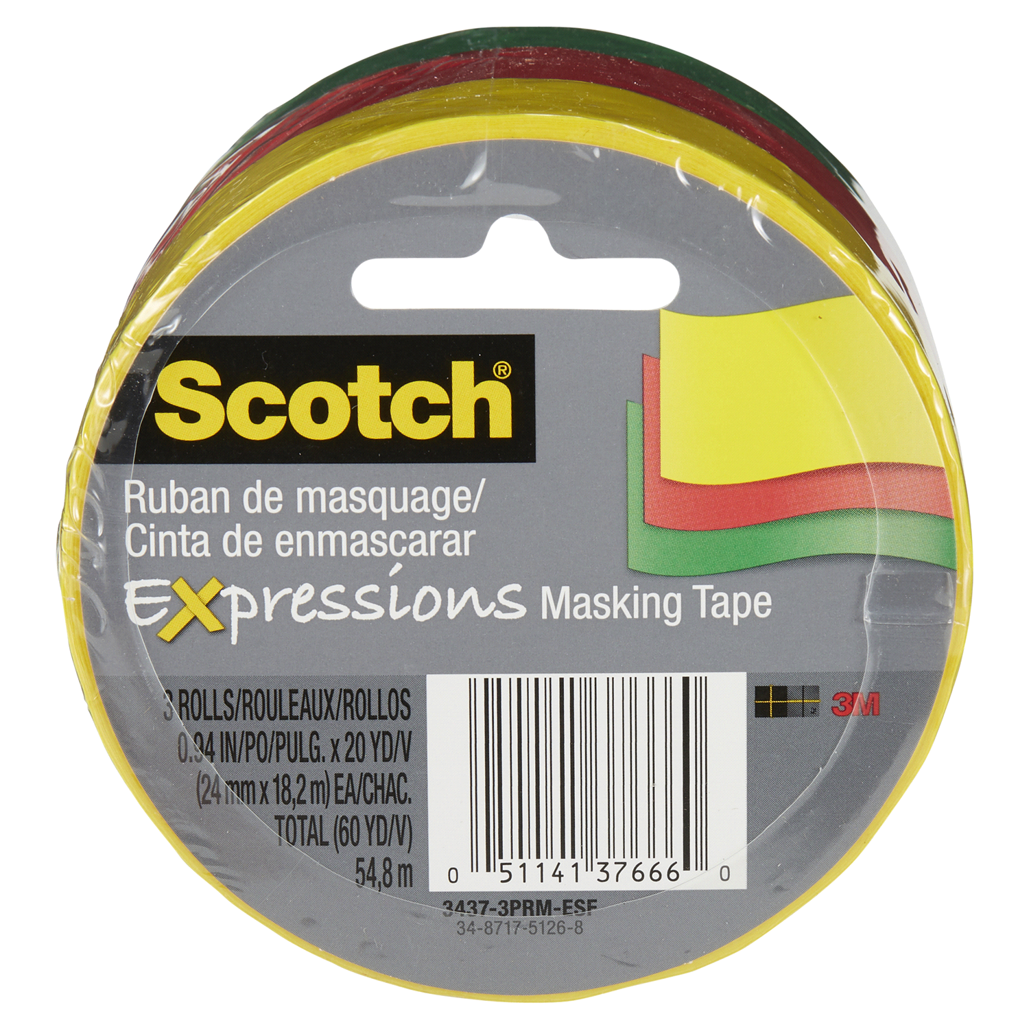 Scotch Expressions Masking Tape comes in a variety of colors and patterns that allow you to decorate and personalize your projects. Available in .94 inch by 20 yards.