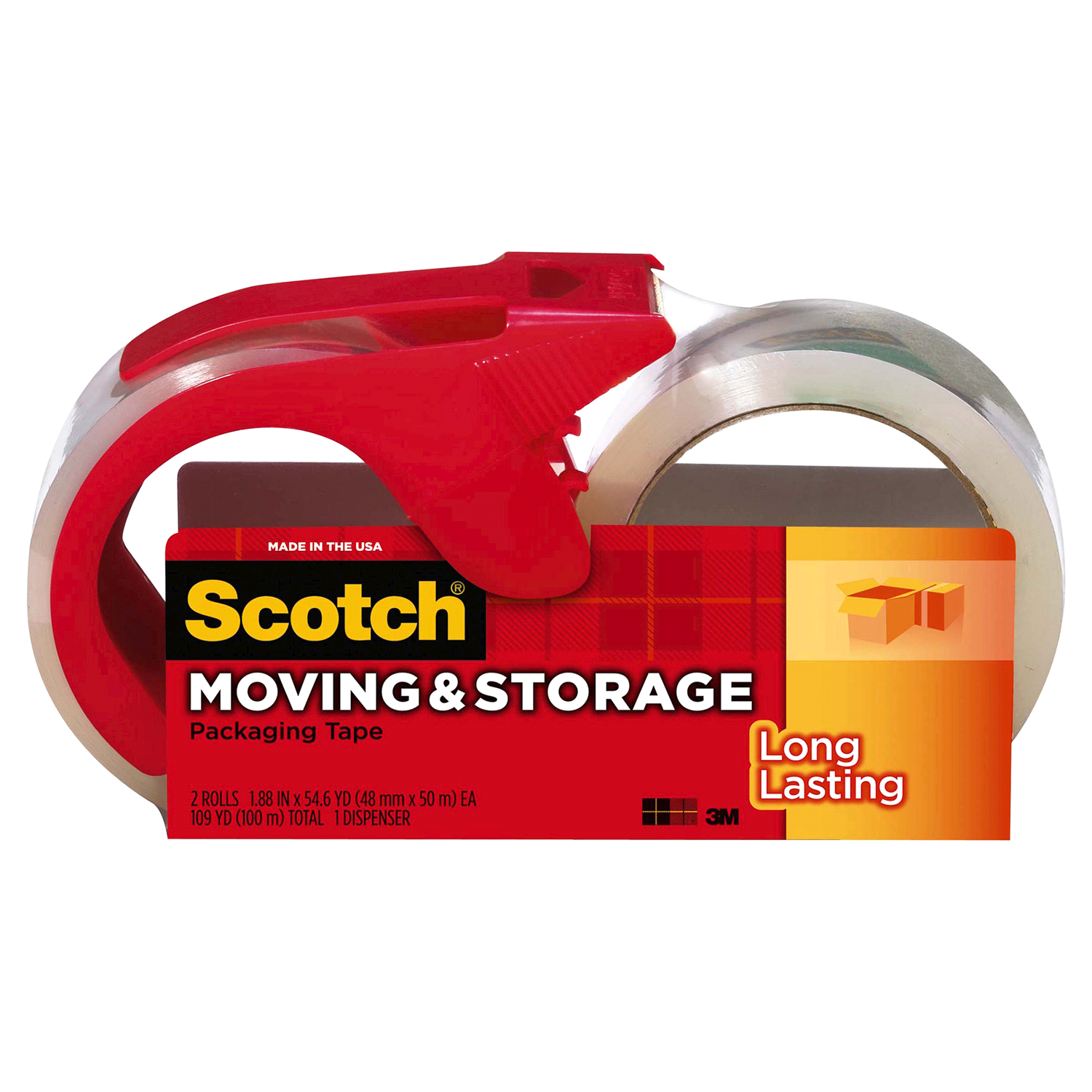 Scotch Long Lasting Storage Packaging Tape is suitable for sealing boxes during your storage. It features a long-lasting adhesive that works in hot or cold temperatures.