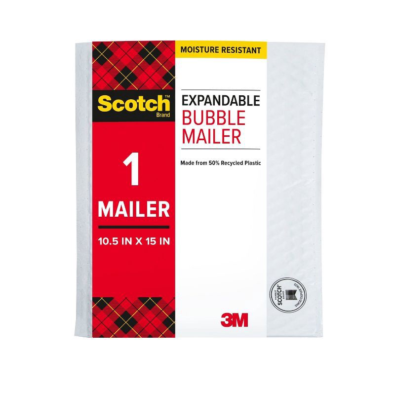 - POLY BUBBLE MAILER: One white Scotch Poly Bubble Mailer in Size 5 Large, with interior dimensions of 10.5 inches by 15 inches