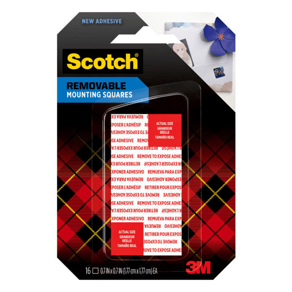 Change your décor as quickly as inspiration strikes with Scotch Removable Double-Sided Mounting Squares. These convenient, squares let you mount your favorite photos, kids' artwork and to do lists wit…