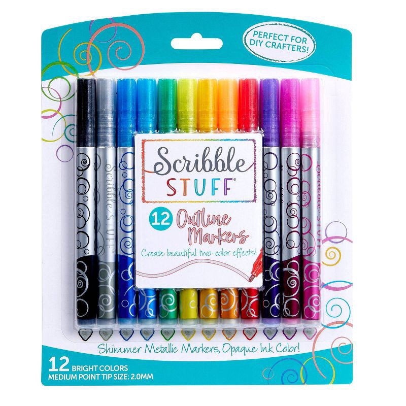 Make your words and artwork stand out with Scribble Stuff 12ct Outline Markers! Each marker features a metallic ink that outlines your strokes with a shimmering effect while the center fills with a br…