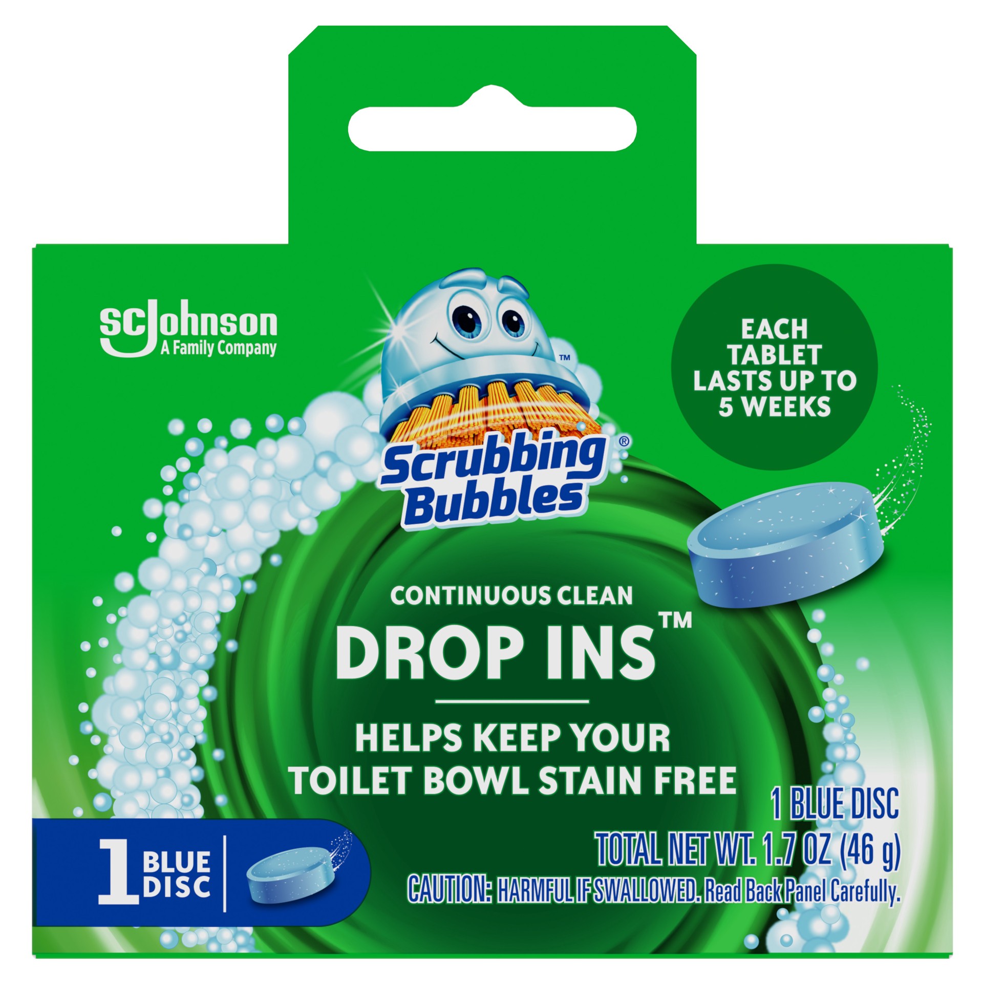 Scrubbing Bubbles Drop-Ins provide continuous odor protection for a continuous clean. Drop one toilet cleaning disc into your tank to help remove bowl stains caused by hard water, minerals and limesca…