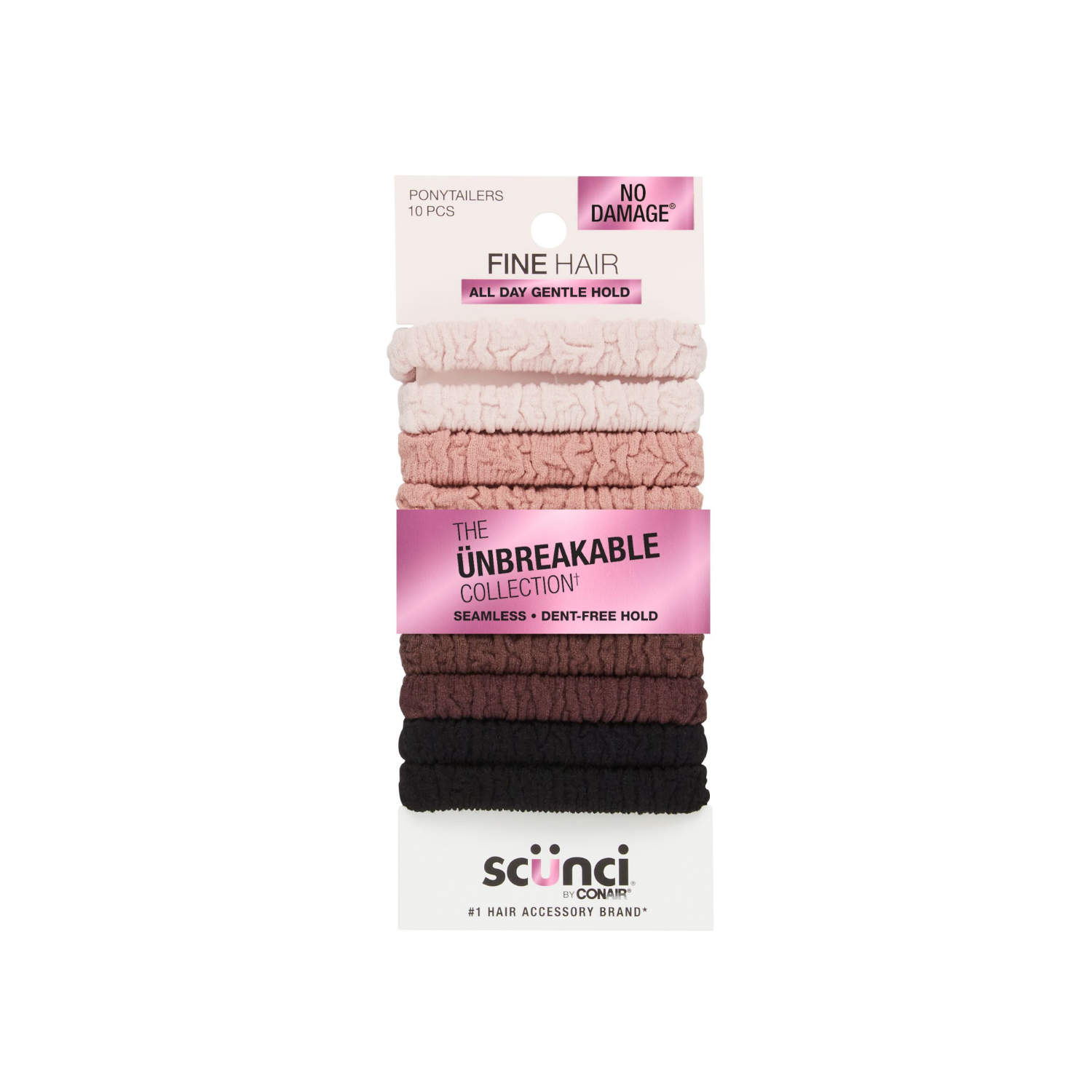 Scunci Comfy Unbreakable Ponytailers Fine Hair Neutrals 10pk