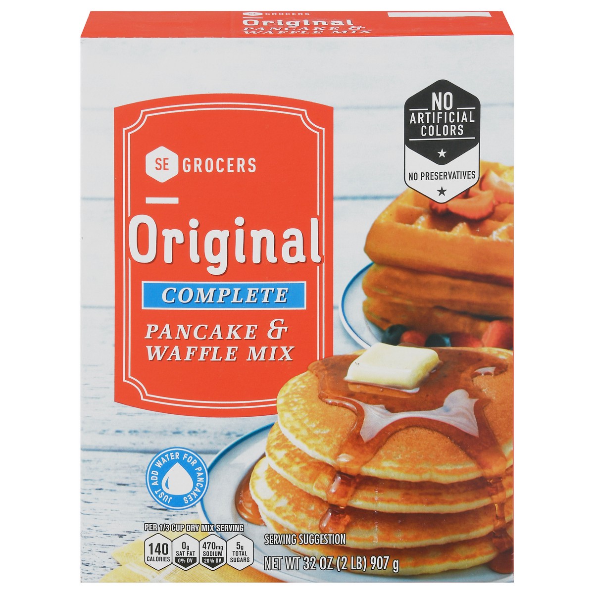 No artificial colors. No preservatives. Just add water for pancakes.