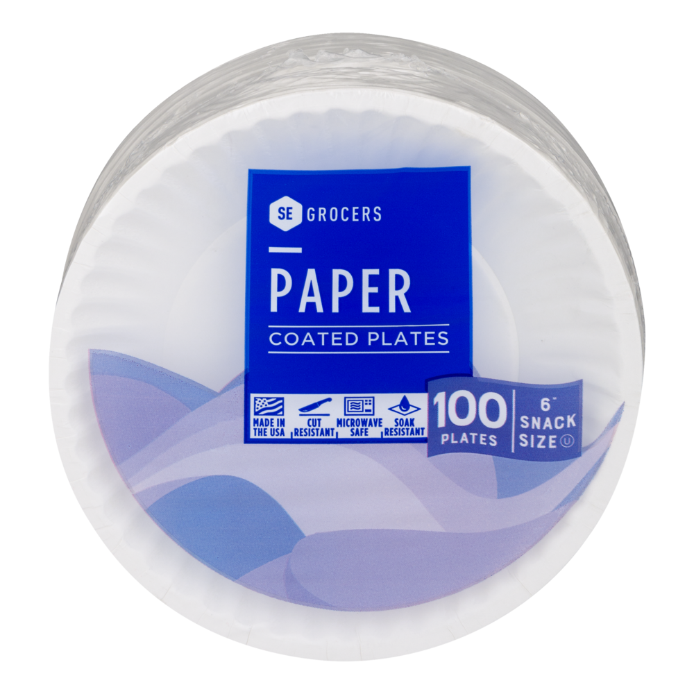 SE Grocers Paper Plates 6'' Snack Size Coated - 100 CT