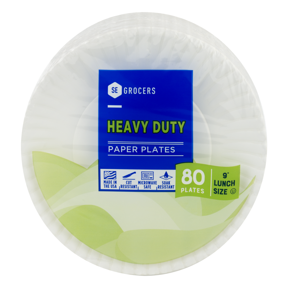 SE Grocers Paper Plates 9" Lunch Size Heavy Duty - 80 CT