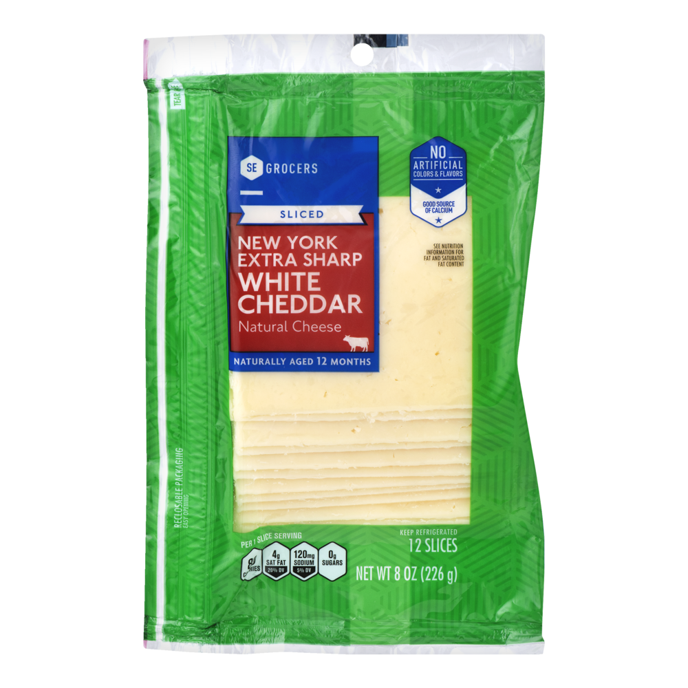 SE Grocers Sliced New York Extra Sharp White Cheddar Natural Cheese - 12 CT