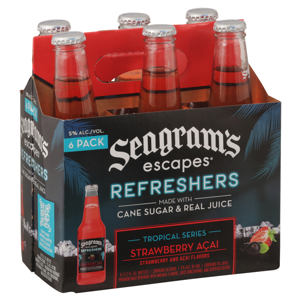 Seagram’s Refreshers Strawberry Acai, made with real fruit juice and sweetened with real cane sugar, is a highly refreshing beverage that is perfectly sweet with a clean finish and great taste at 5% A…
