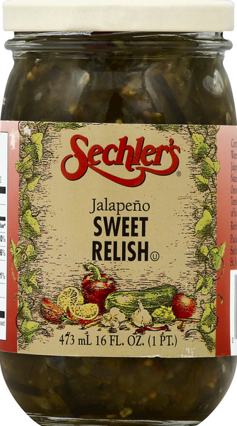 Cucumbers, Sugar, Water, Vinegar, Salt, Spices, Jalapeno Peppers, Red Bell Peppers, Natural and Artificial Flavors, Onions, Xanthan Gum, Alum, Turmeric, and 1/10 of 1% Benzoate of Soda Added as a Pres…