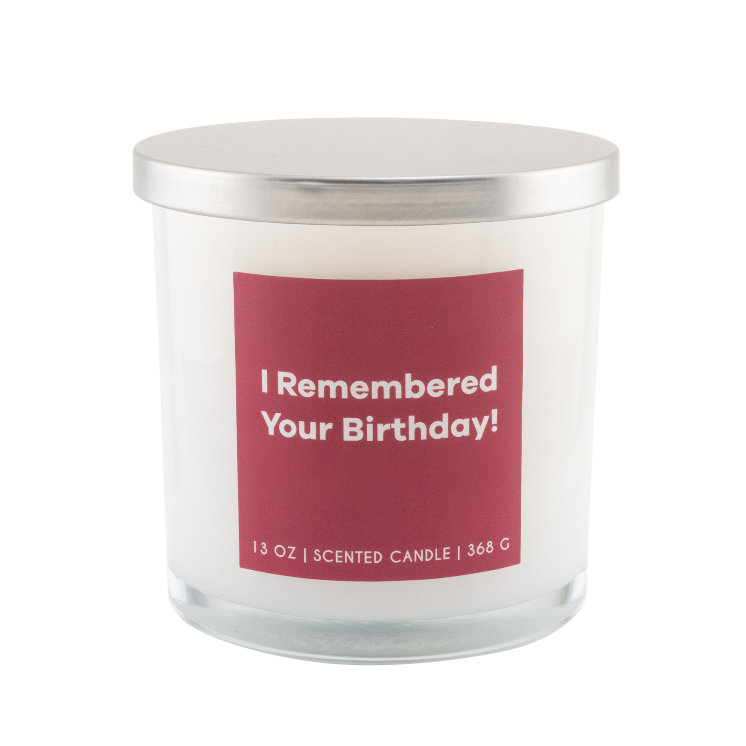 Gifting inspired I Remembered Your Birthday Sentiment candle fragranced notes of cocoa truffle, raspberry and rose.