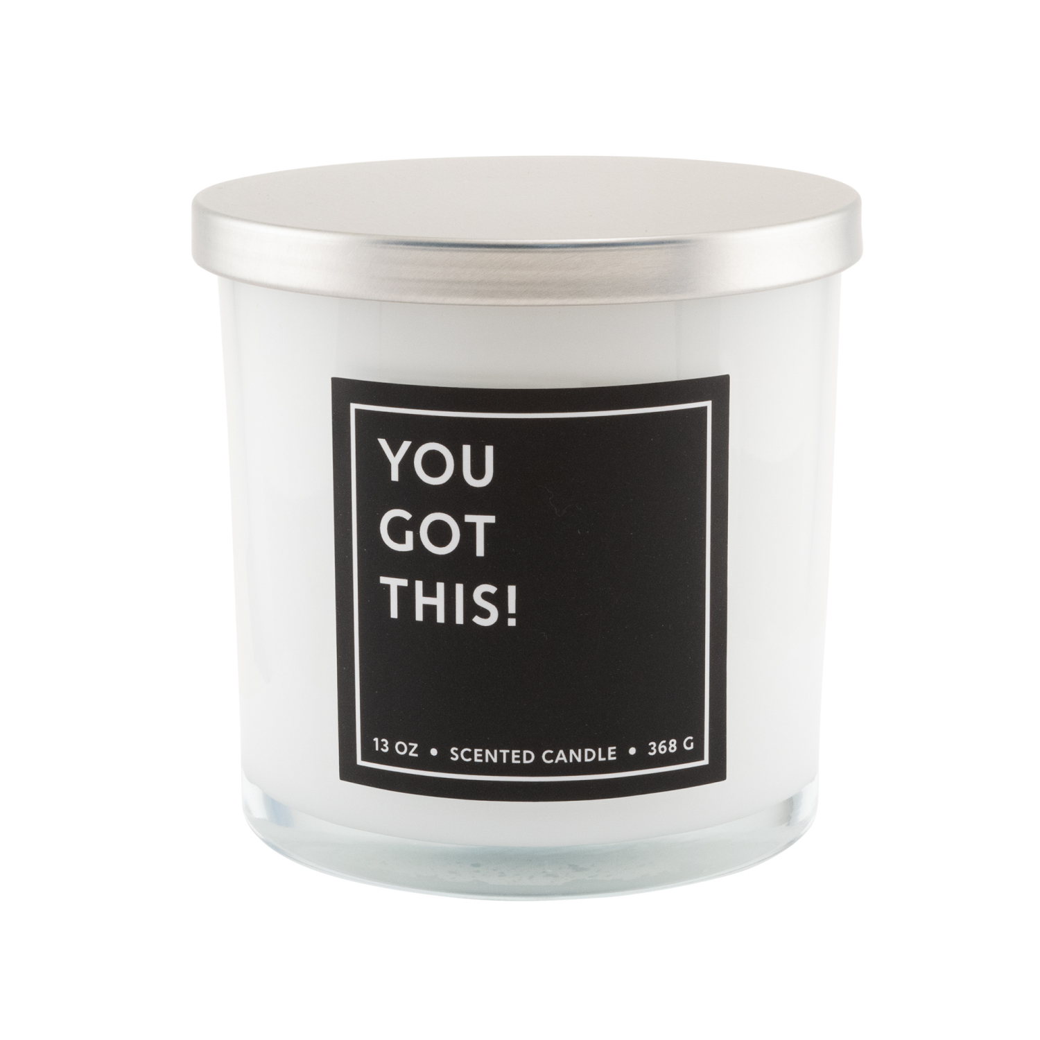 Positivity inspired You Got This Sentiment candle fragranced with notes of dahlia, orchid and geranium.