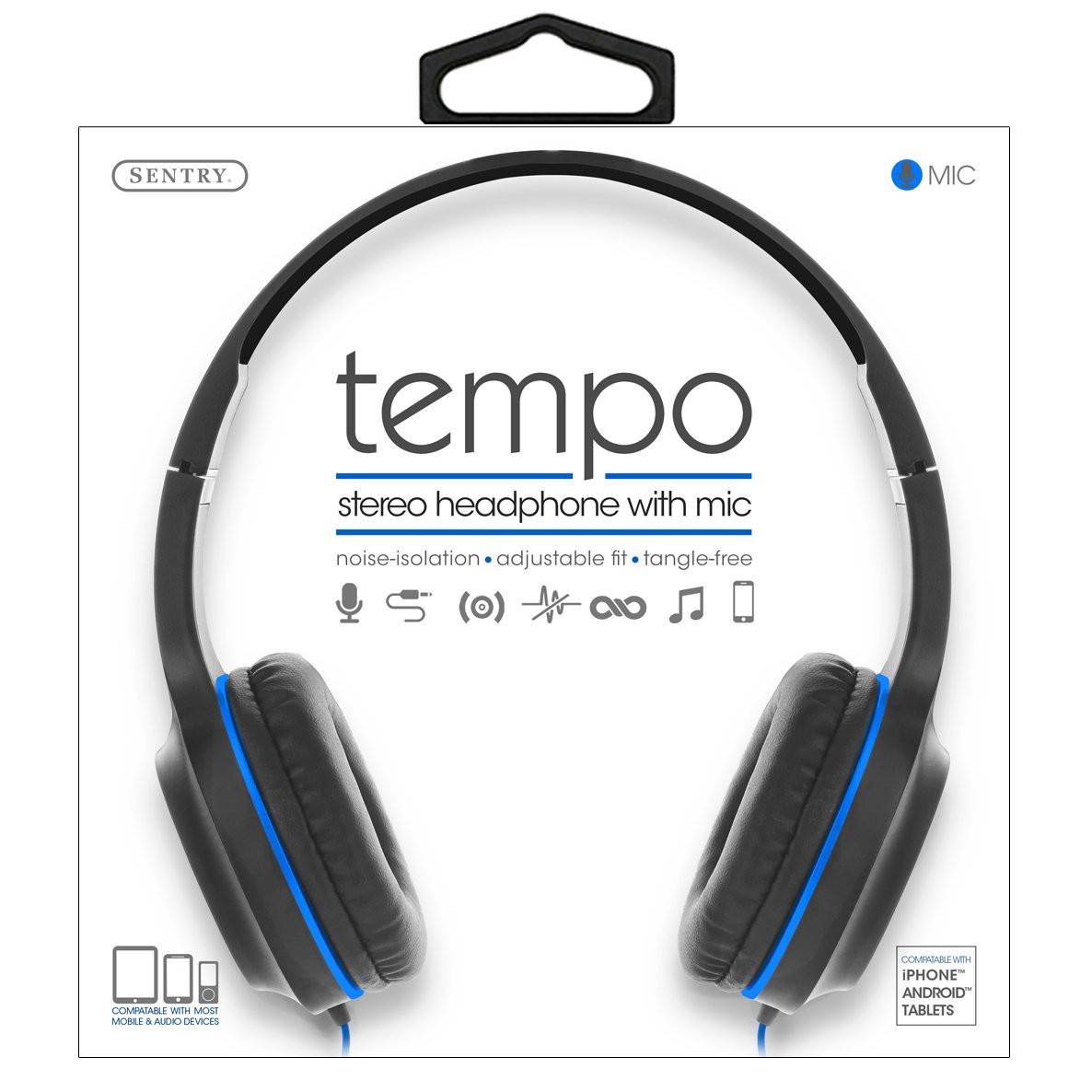 Sentry Tempo Stereo Headphones with Mic - Blue