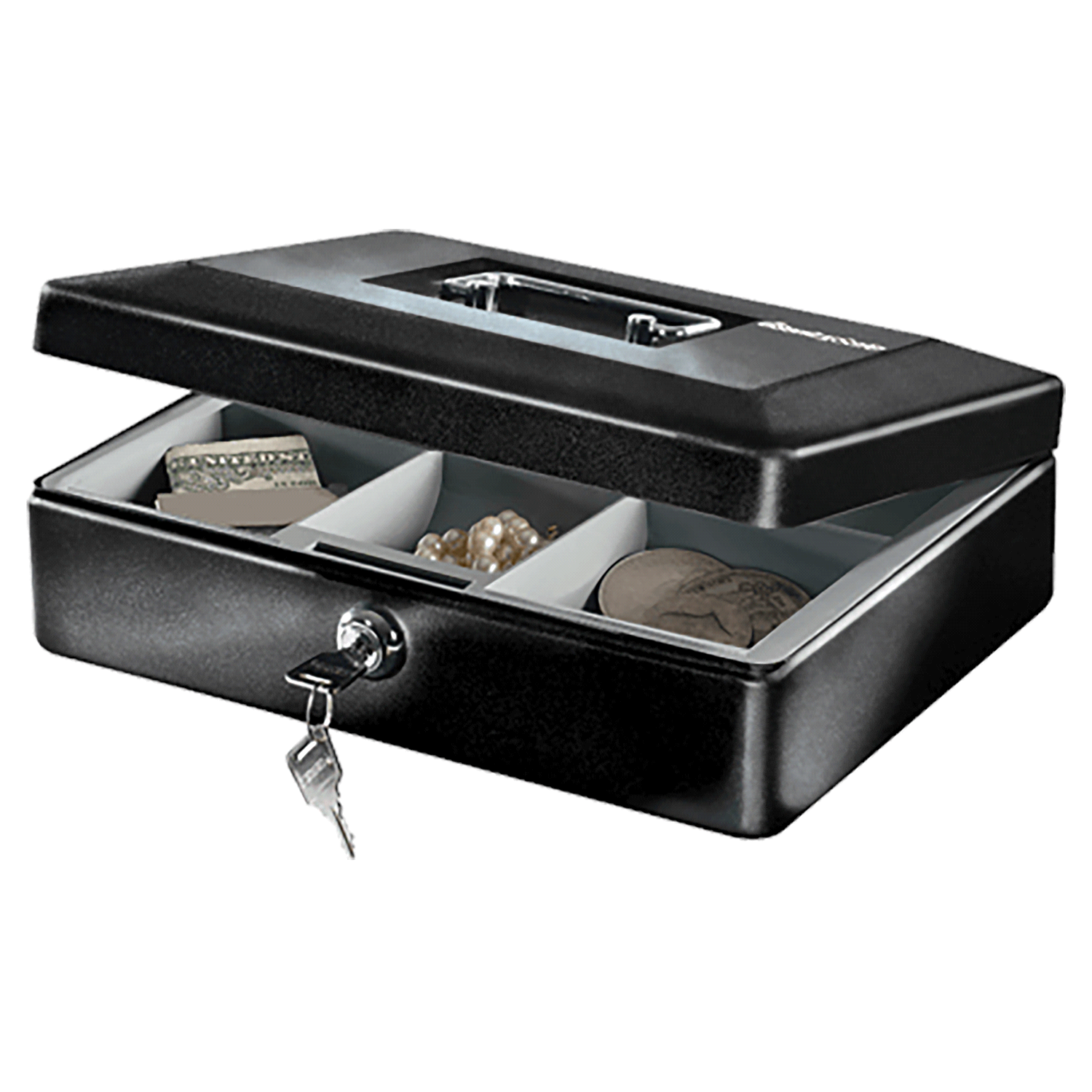 The SentrySafeCash BoxCB10 provides versatile security for cash handling. A convenient foldaway handle and a removable cash drawer makes the CB10 ideal for home and business use.