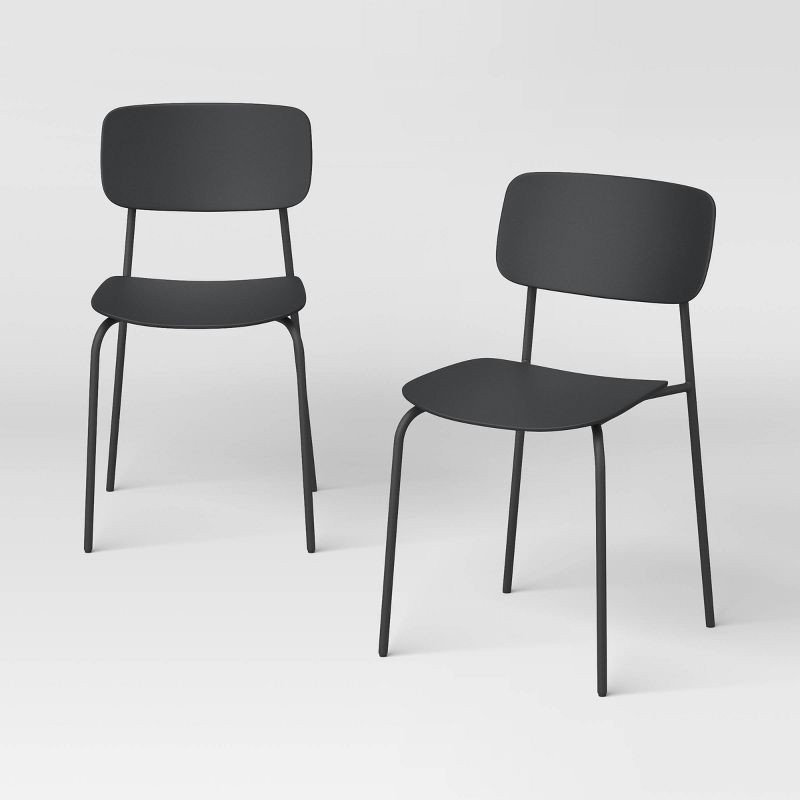 Set of 2 Molded Plastic with Metal Base Dining Chair Black - Room Essentials™