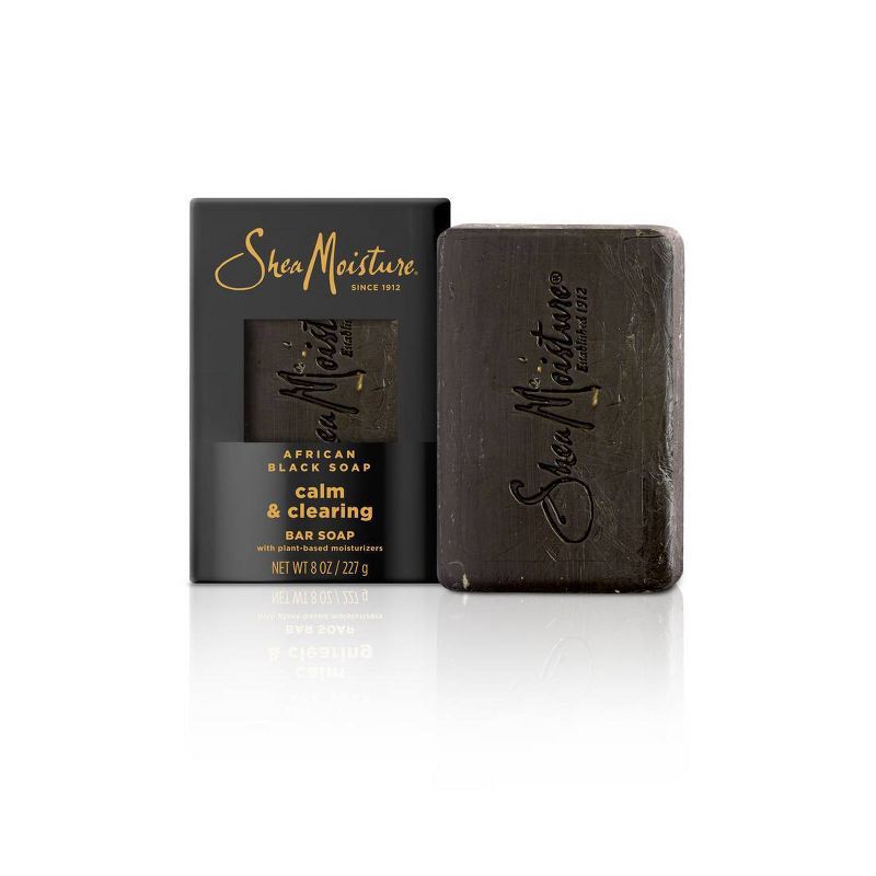 - SheaMoisture's African Black Soap Calm & Clearing Bar soap, designed for melanin-rich skin, replenishes and restores skin for 24 hours.