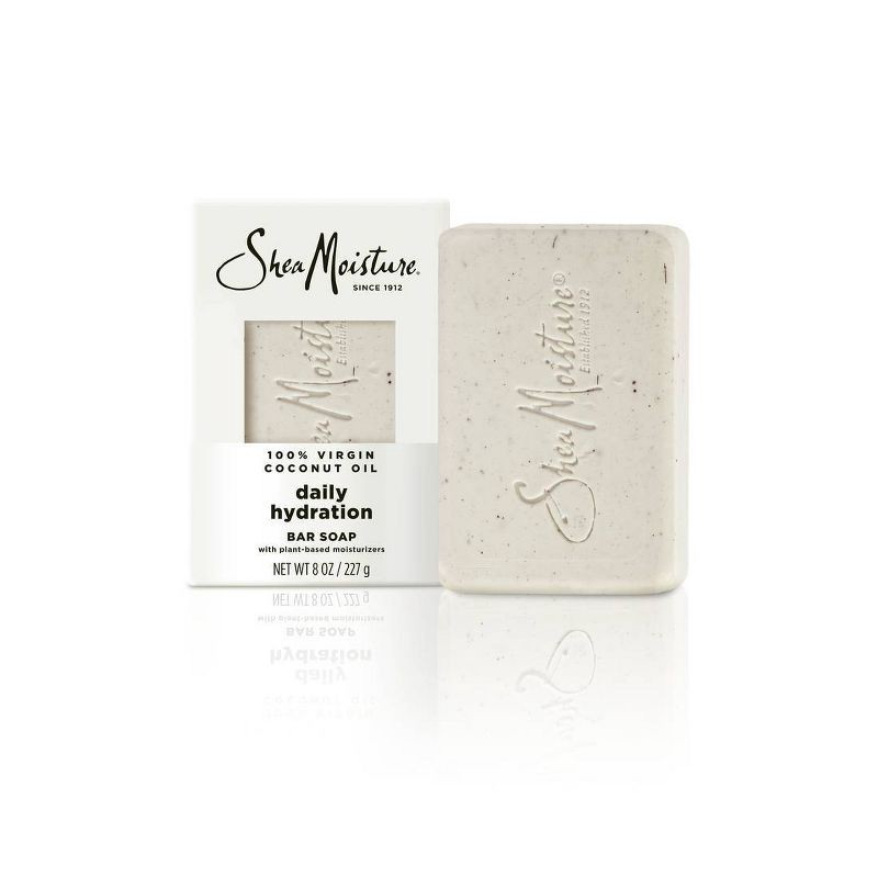 - SheaMoisture's 100% Virgin Coconut Oil Daily Hydration Bar soap, designed for melanin-rich skin, replenishes and restores skin for 24 hours.