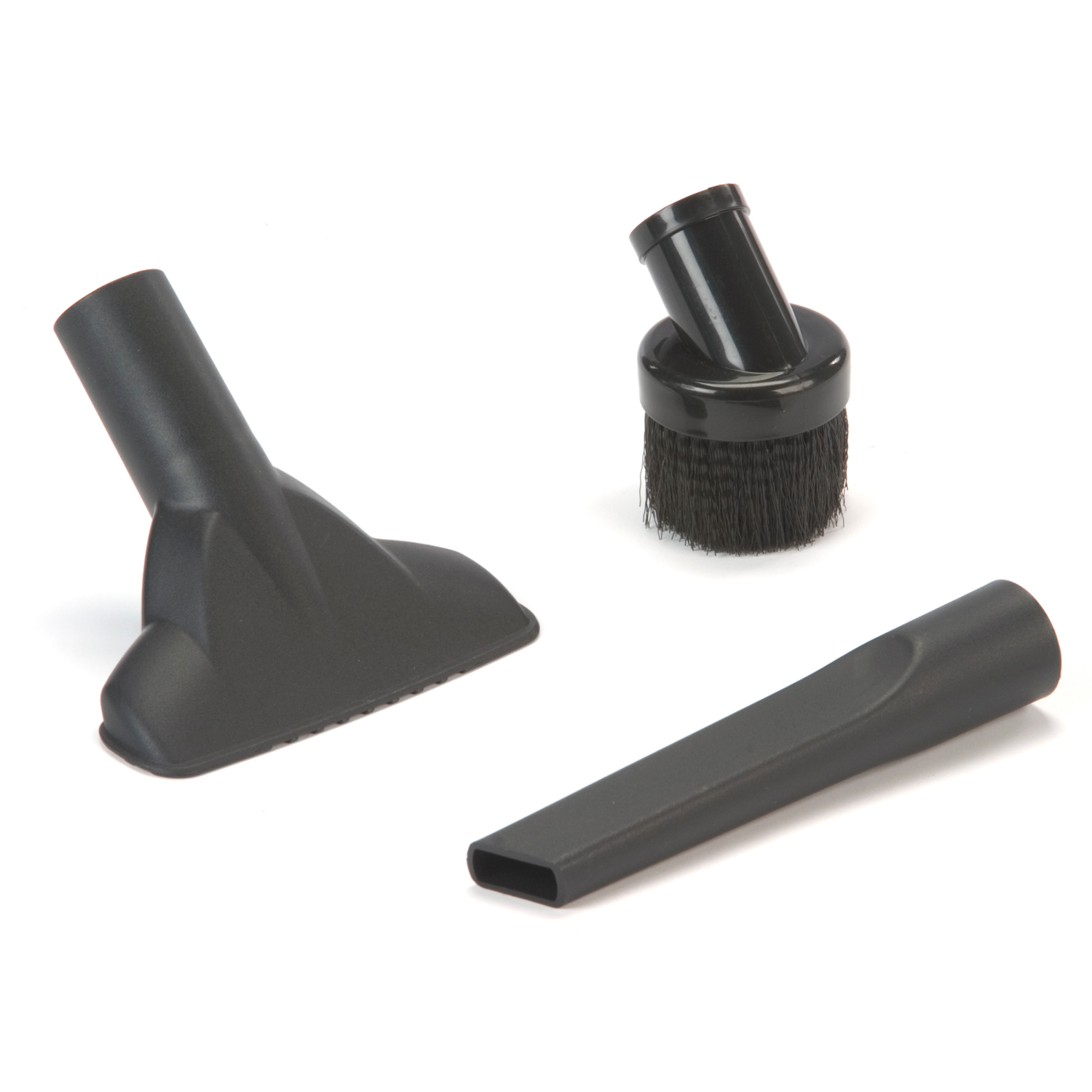 Shop-Vac 3 piece kit includes 1.25 round brush, gulper nozzle and crevice tool. Will work on 1.25 hose end. Gives all necessary attachments in one kit.