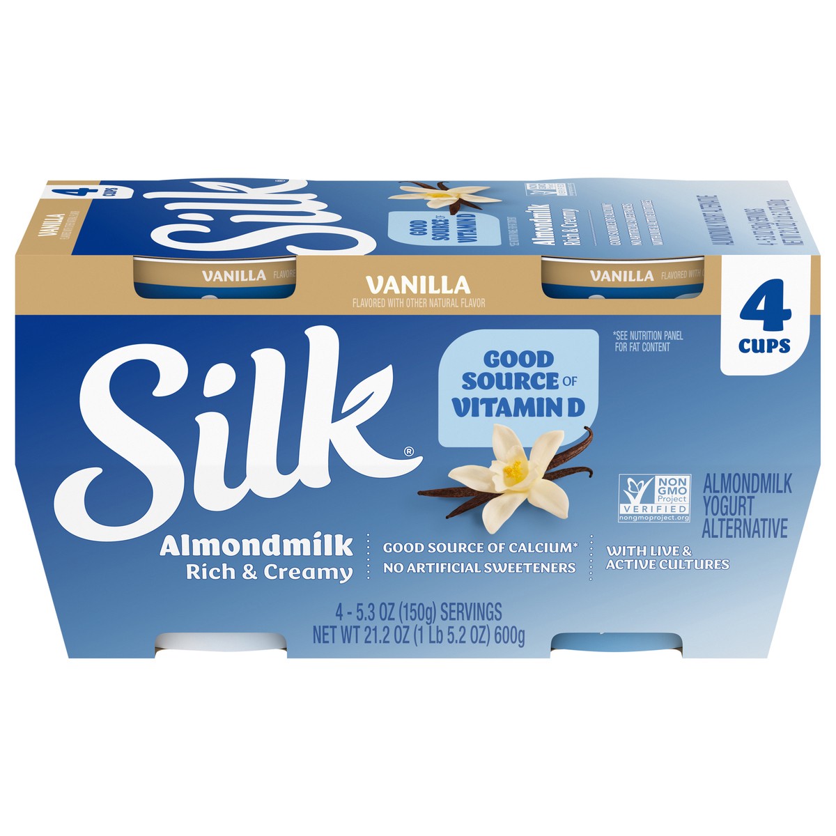 Silk Vanilla Dairy Free, Almond Milk Plant Based Yogurt Alternative, 4 Ct, 5.3 OZ Containers
