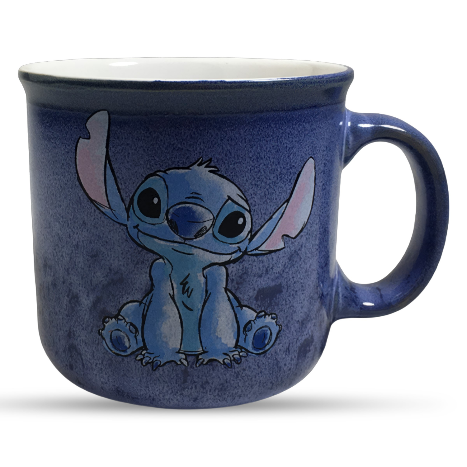 Stitch ceramic camper mug. Mug has a 20oz capacity and features a reactive glaze treatment.