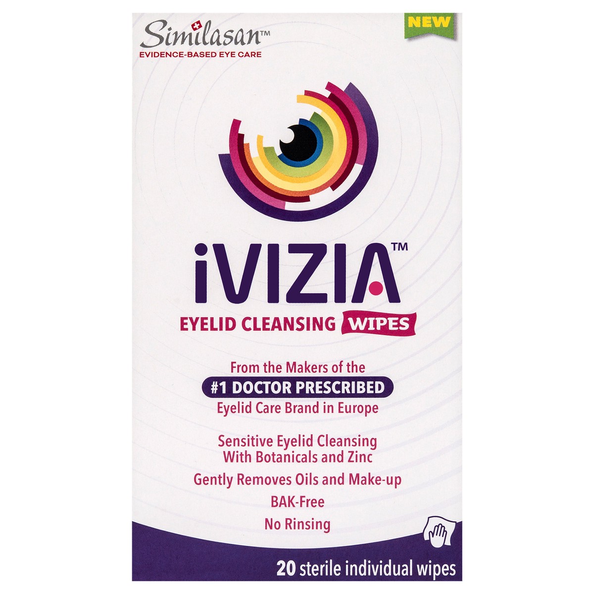 iVIZIA Eyelid Cleansing Wipes for sensitive eyelid cleansing, preservative-free, micellar, no rince, gentle eye makeup remover, 20 sterile single-use wipes for eyelids