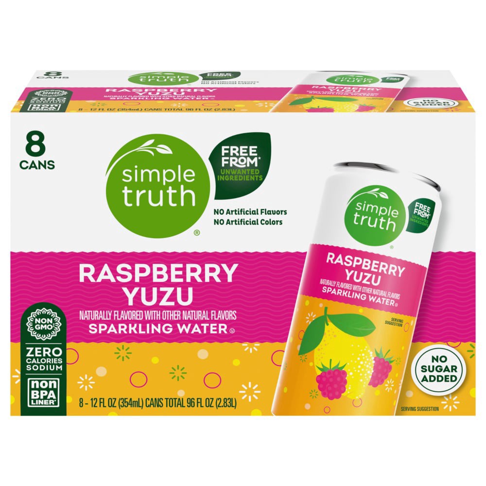 Simple Truth® Raspberry Yuzu Sparkling Seltzer Water Cans offer a refreshingly bold taste experience. Crafted with carbonated water and natural flavors, this effervescent drink boasts zero calories an…