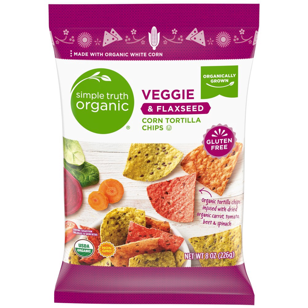 Simple Truth Organic® Veggie & Flaxseed Corn Tortilla Chips deliver crunch and flavor in every bite. Organic stone ground white corn, organic vegetable oil, and organic brown flax seeds blend with org…