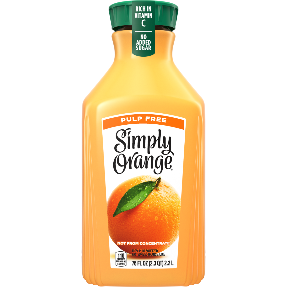 For Simply Orange Pulp Free, we carefully select real, ripe oranges and turn them into a deliciously simple pulp-free orange juice. Not from concentrate and never frozen, for a deliciously fresh-squee…