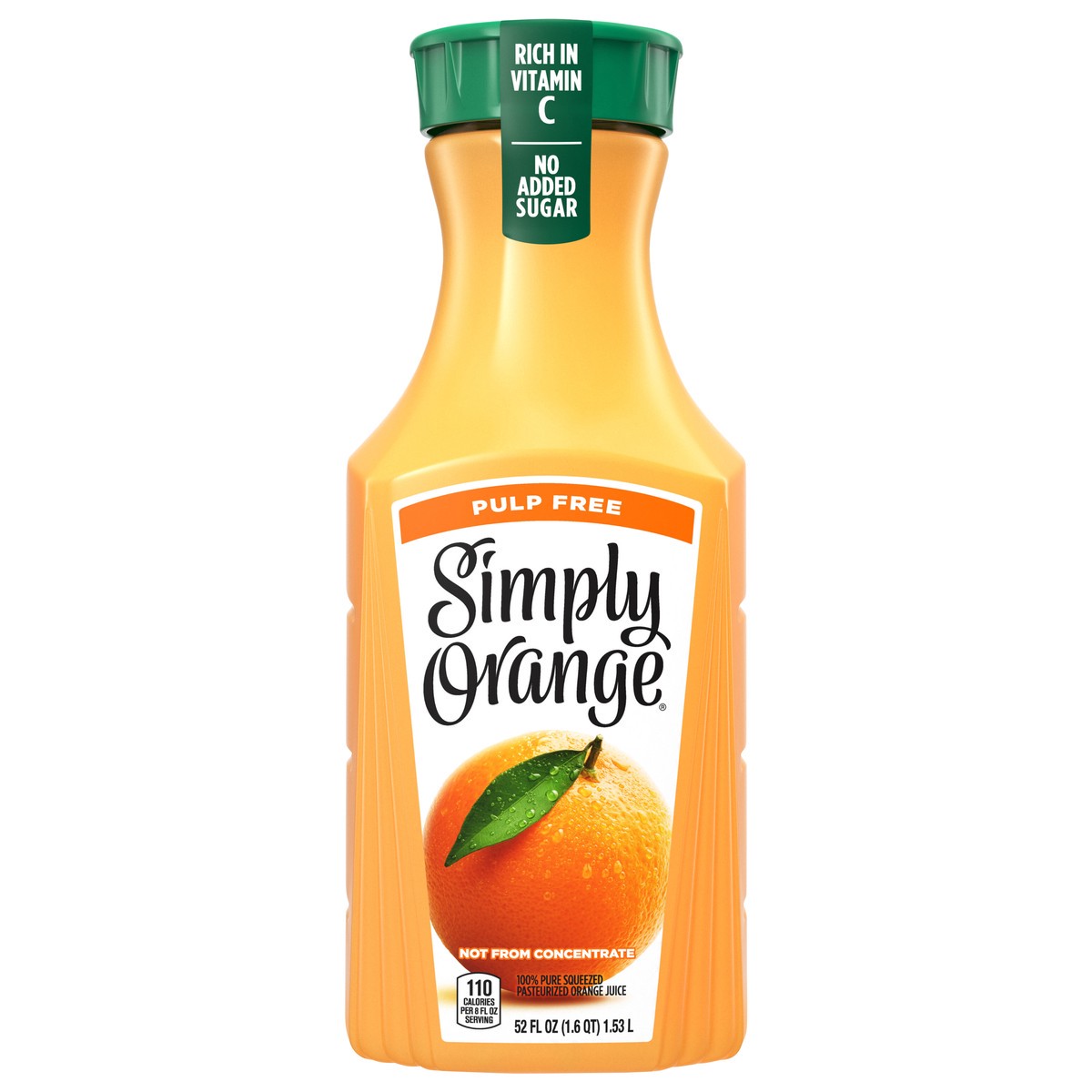 For Simply Orange Pulp Free, we carefully select real, ripe oranges and turn them into a deliciously simple pulp-free orange juice. Not from concentrate and never frozen, with a deliciously fresh-sque…