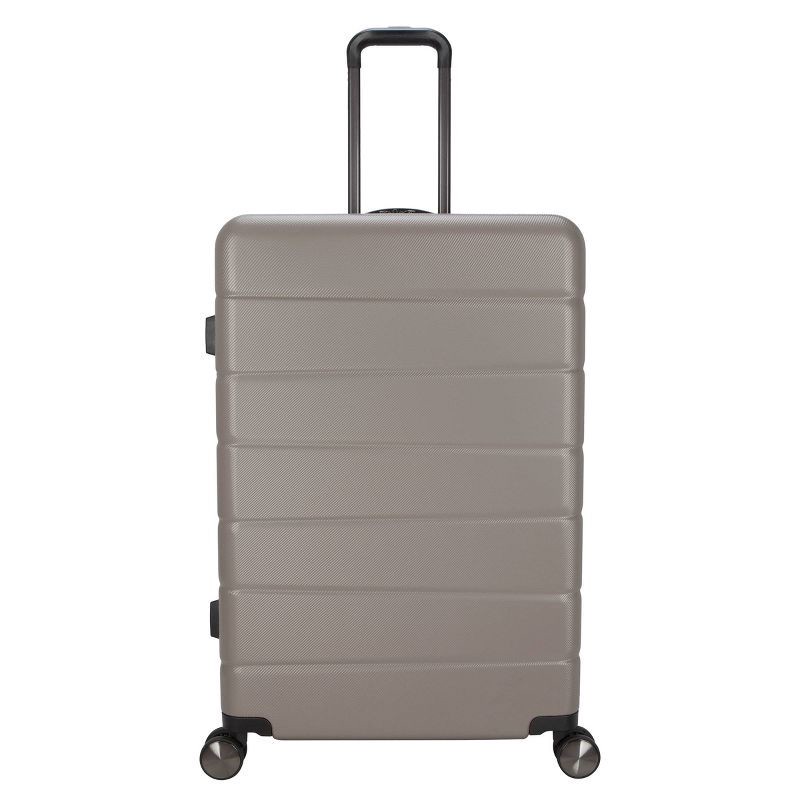Skyline Hardside Large Checked Spinner Suitcase - Oxford Tan: Telescoping Handle & 8 Wheels