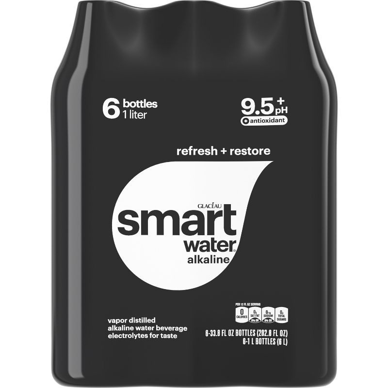 - 6 pack of 33.8 fl oz bottles of smartwater alkaline with antioxidant bottled water
