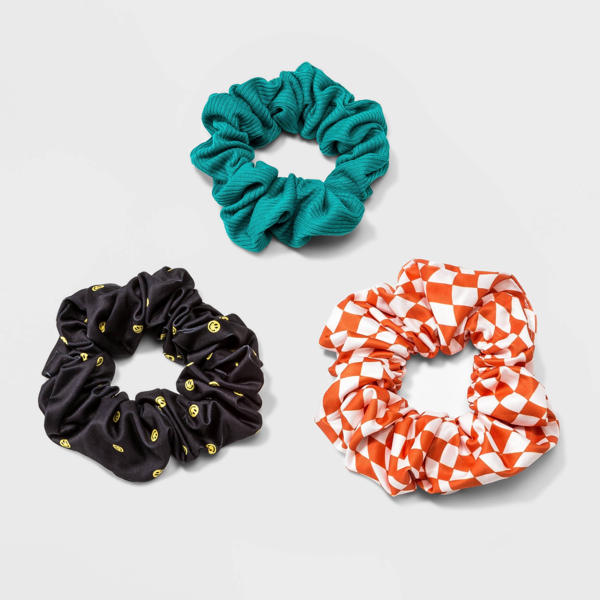 Three-piece tail twister set includes one smiley face hair tie, one checkered hair tie and one ribbed jersey fabric hair tie. Fabric covered elastic secures hair without tugging, making these suitable…