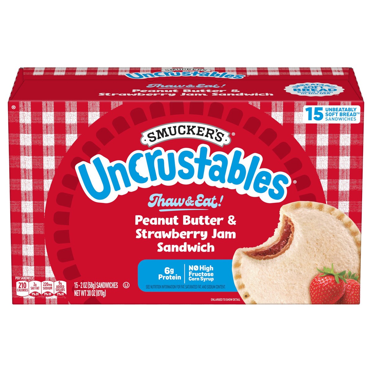 Make busy days more doable with Smucker''s Uncrustables frozen sandwiches — the easiest kid-approved snack and lunch food ever. This box contains fifteen individually wrapped sandwiches. Just grab one…