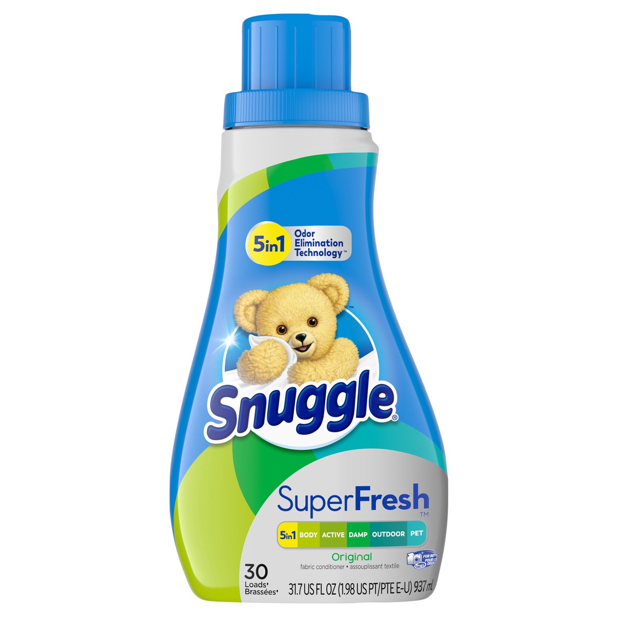 5 in 1 Odor elimination technology. 5 in 1: Body; active; damp; outdoor; pet. Snuggle SuperFresh Liquid Fabric Conditioner is specially formulated to help eliminate tough odors. Pair Snuggle SuperFres…