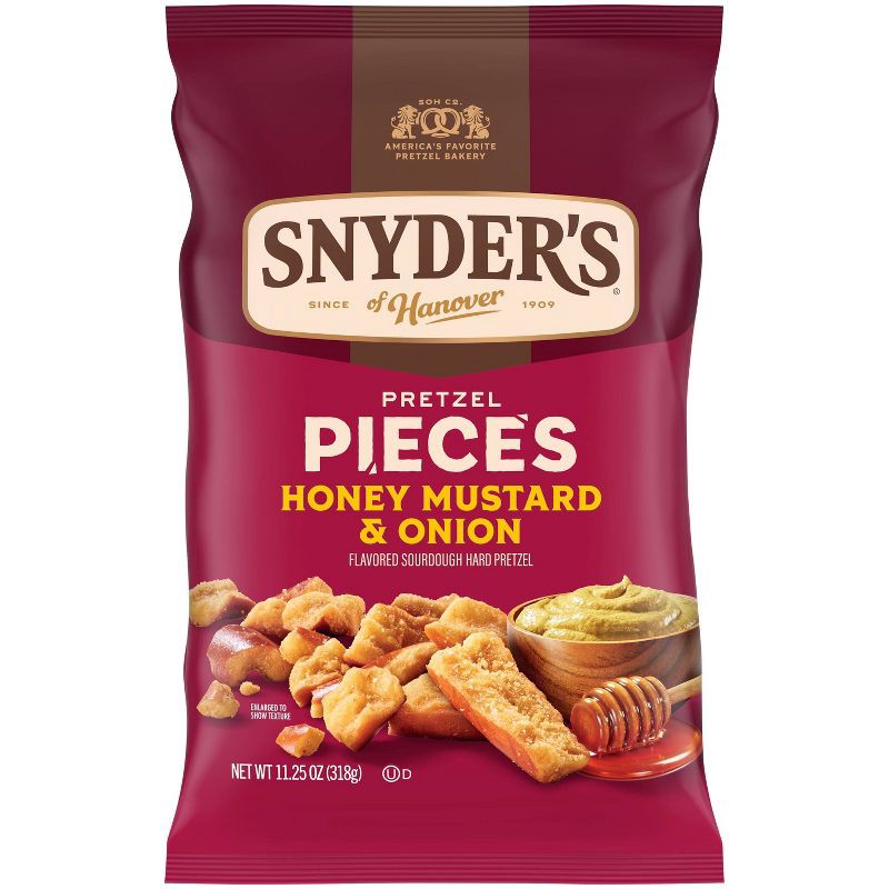 - Includes one (1) 11.25-ounce bag of Snyder's of Hanover Honey Mustard & Onion Flavored Pretzel Pieces