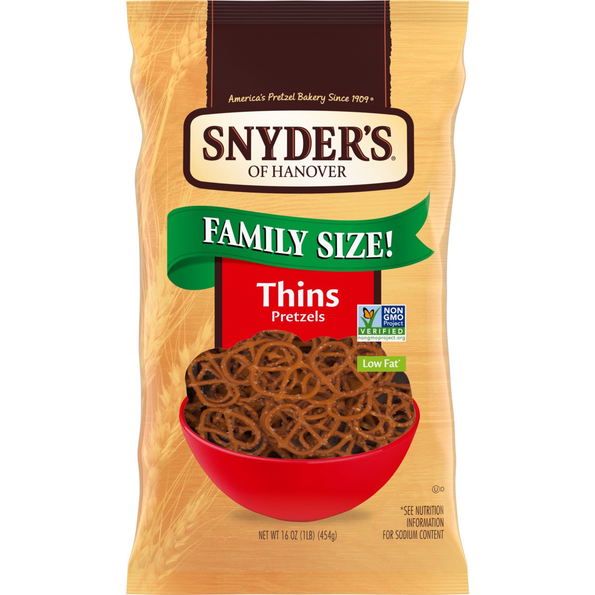 Snyder's of Hanover pretzels made extra thin and twisted into a classic pretzel shape. Snyder's of Hanover is the leading pretzel brand with great tasting varieties to please every palette. Snyder's o…