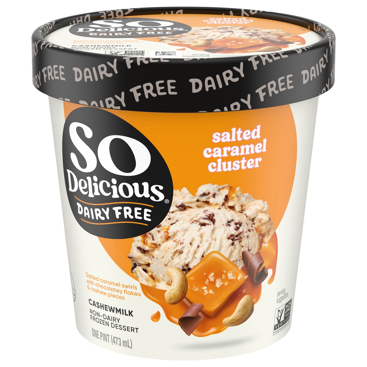 So Delicious Cashew Milk Frozen Dessert, Salted Caramel Cluster, Dairy Free, Vegan, Non-GMO, Kosher, 1 Pint Container