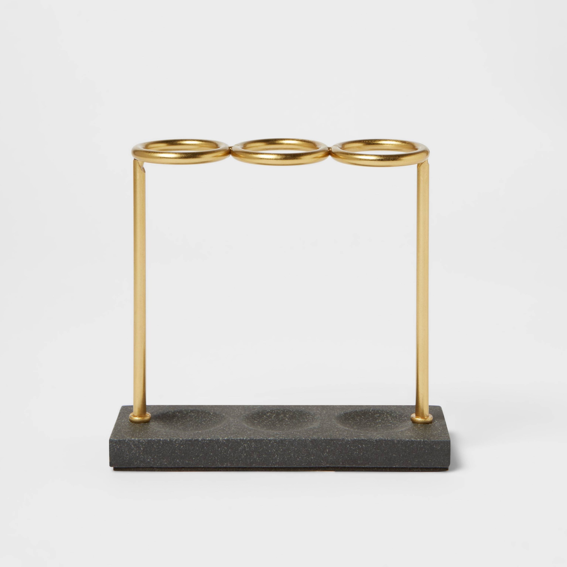 Add a touch of unique style to your bathroom aesthetic with this Solid Toothbrush Holder from Threshold. Featuring an open design with three circular rings, this compact toothbrush holder accommodates…