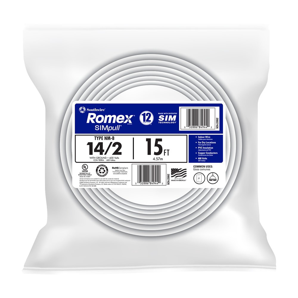 Southwire 15-ft 14 / 2 / Romex SIMpull Solid Indoor CU NM-B W/G Individual pack ( By-the-roll )