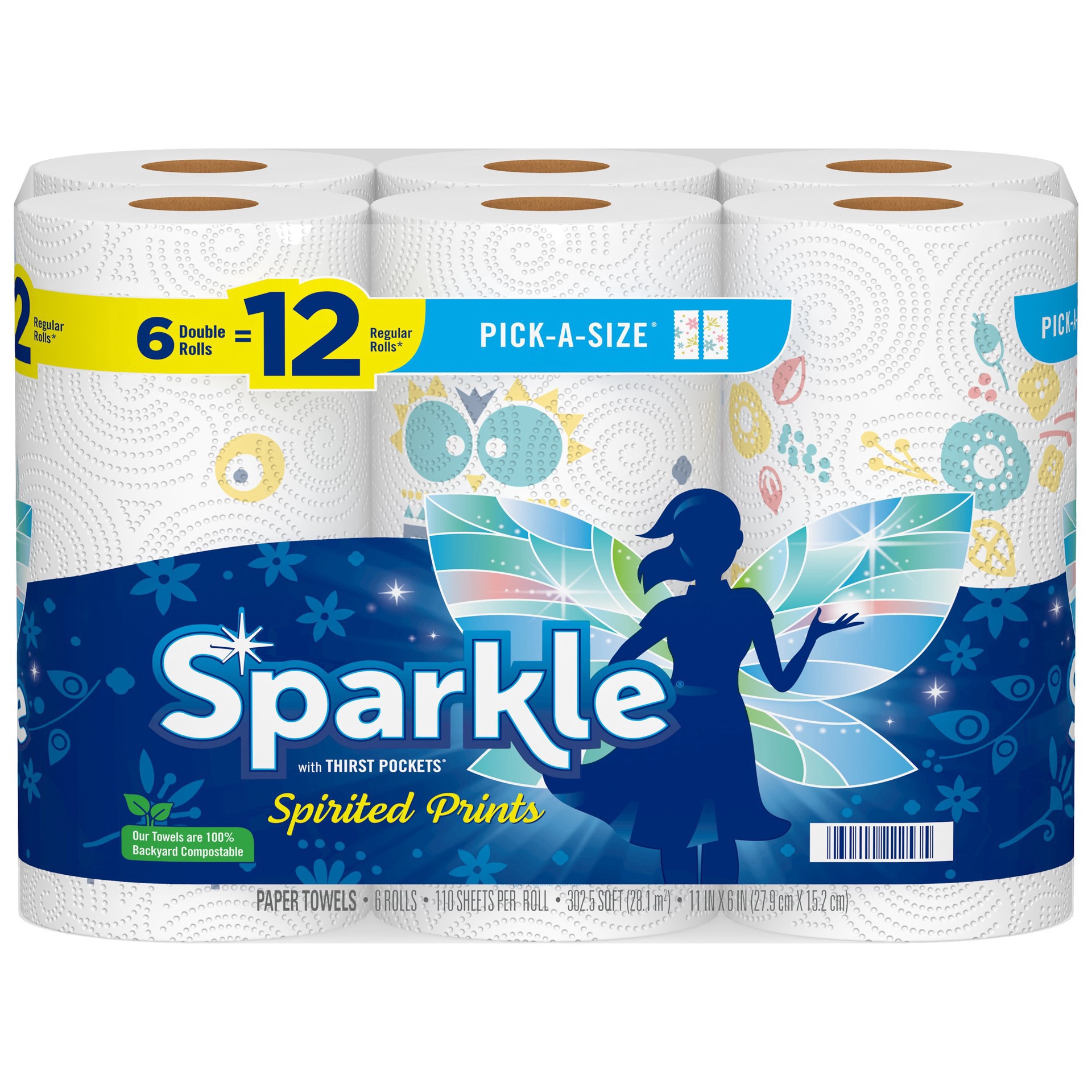 Sparkle Pick-A-Size Spirited Prints Paper Towels, 6 Double Rolls