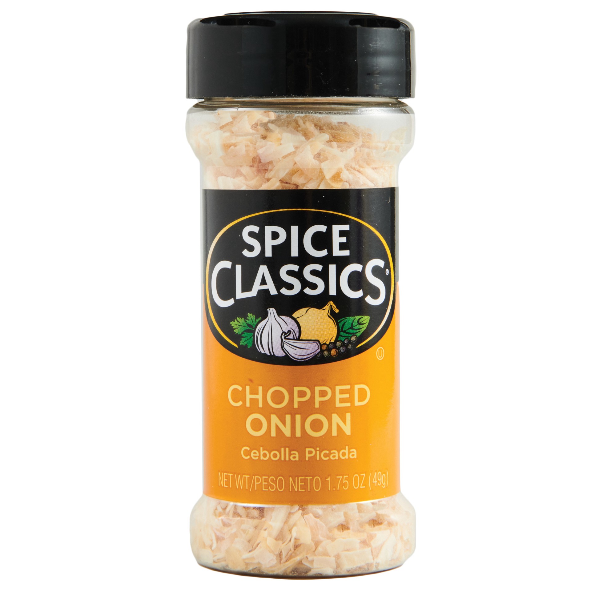 Spice Classics Chopped Onions are always made from real onions. Add sharp, toasty onion flavor to just about any dish- from dips and sauces to meatloaf, vegetables, and pasta salad- with just a shake …