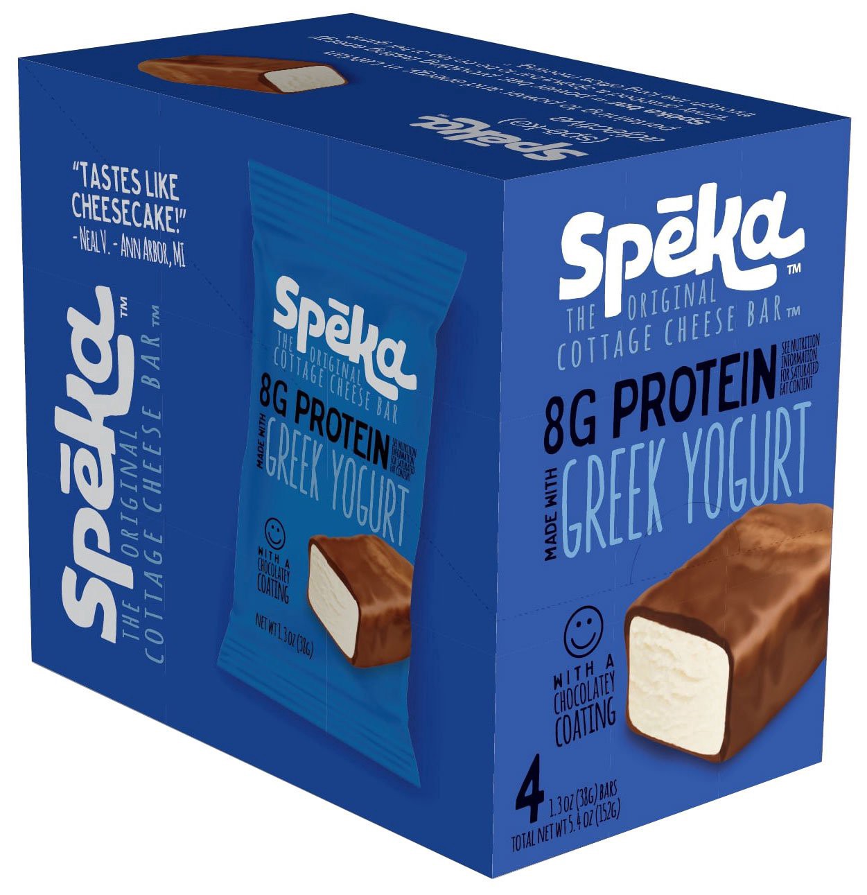 The sweet, buttery chocolate coating provides a delightful contrast to the slightly tangy center. Speka's Greek Yogurt Cottage Cheese Bar is sure to satisfy.