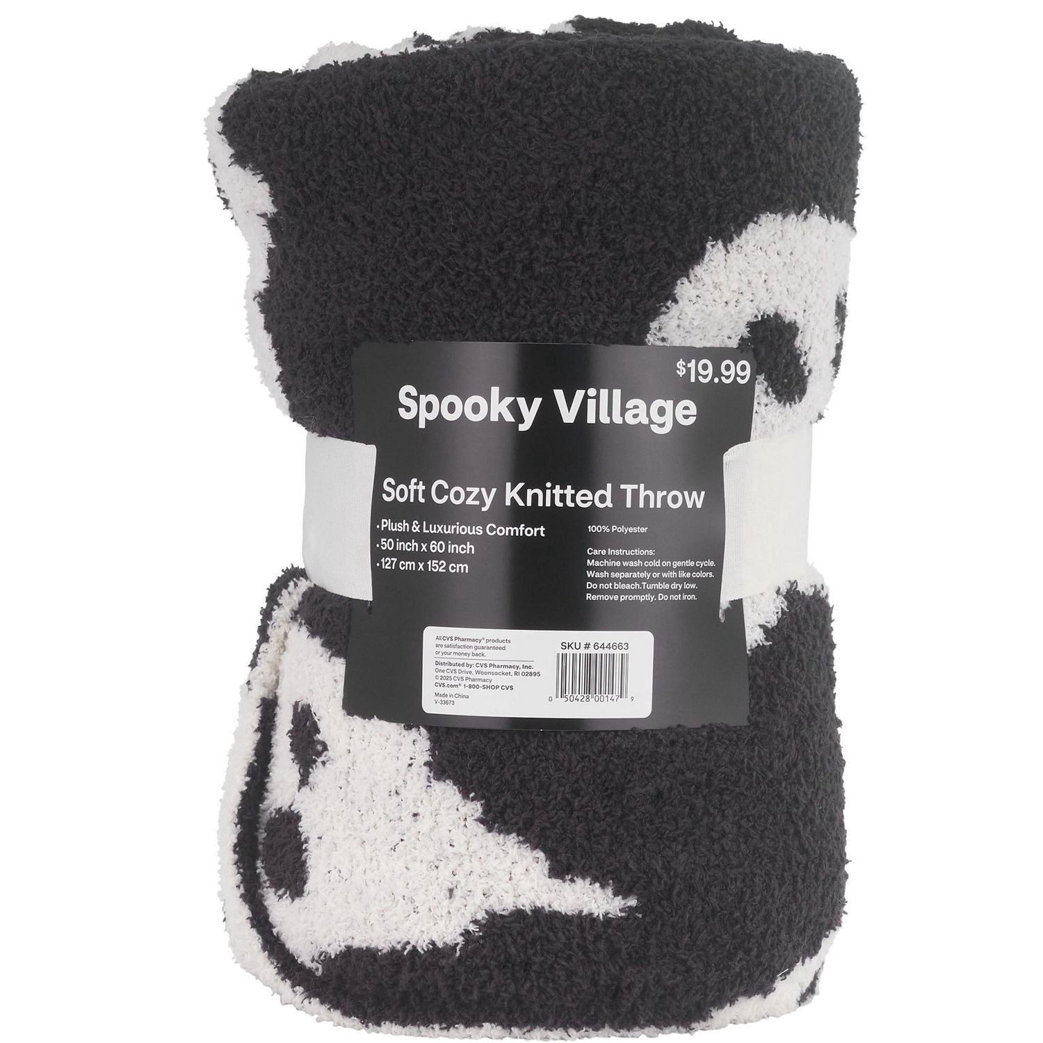 Spooky Village Black & White Ghost Throw Blanket, 50 X 70 In