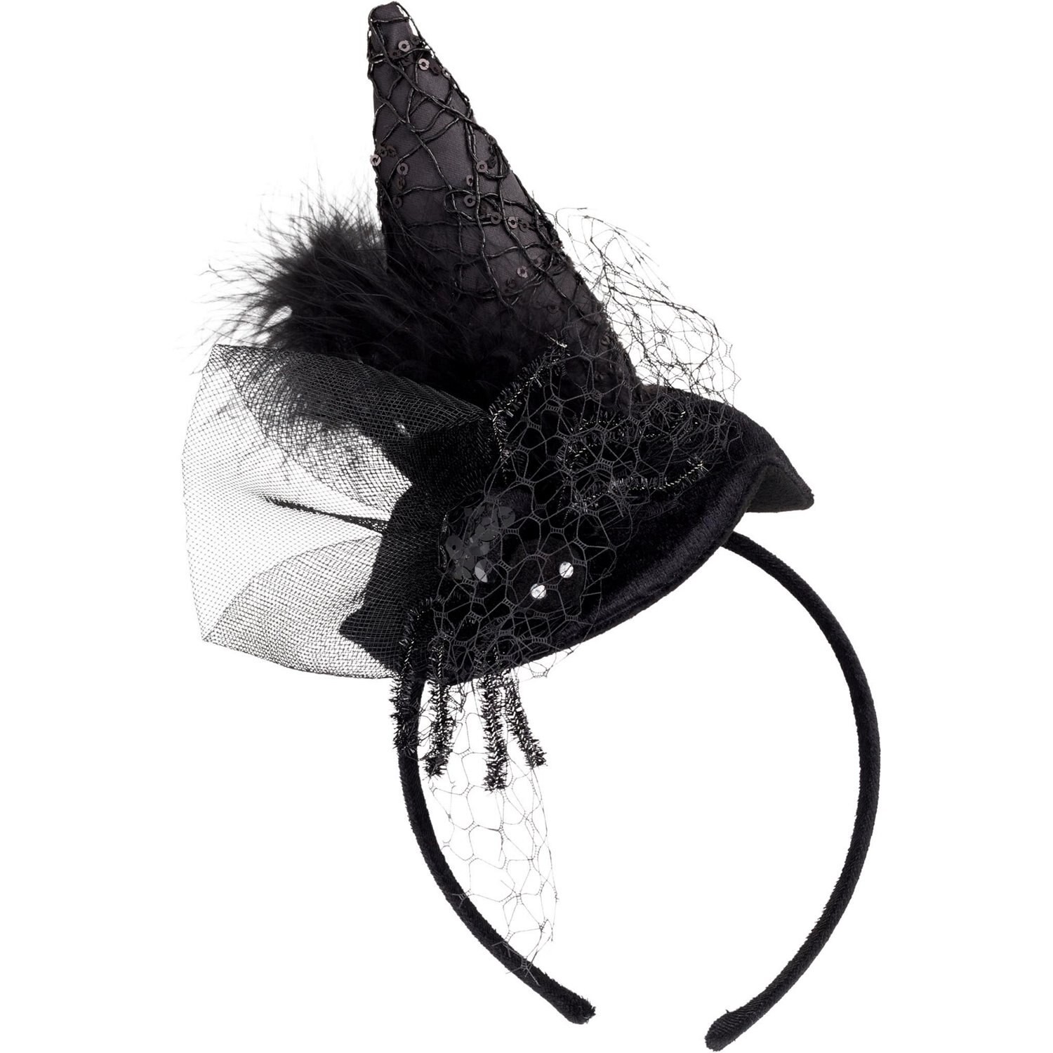 Spooky Village Black Witch Hat Headband With Spider