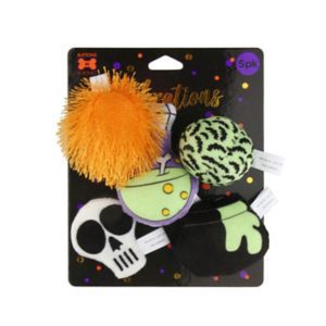 Help your pet do some Halloween magic with the 5-Pack Plush Cat Toys from Celebrations. This pack of five cat toys includes a potion beaker, cauldron, bat ball, and skeleton plush, and a spunky firewo…