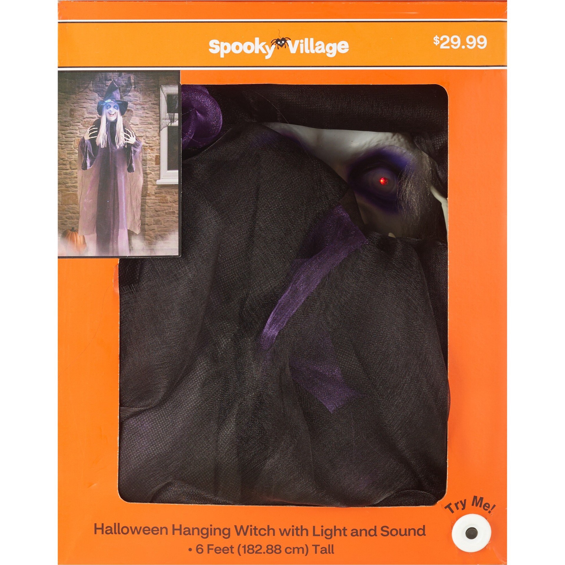 slide 1 of 1, Spooky Village Halloween Hanging Witch With Light And Sound, 1 ct