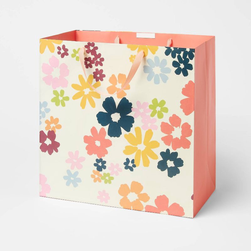 Brighten up any gift-giving experience with the Square Floral Gift Bag Colorful - Spritz™. Perfect for birthdays or all-occasion events, the multicolor floral design adds a cheerful touch. Crafted fro…