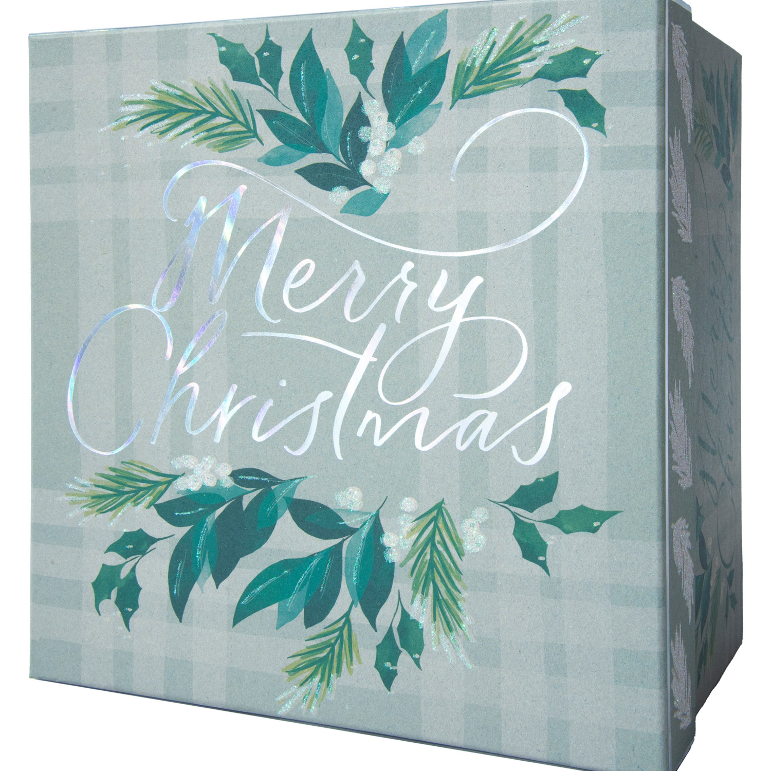 Square Gift Box, Kraft with Hot Stamp, Large, Merry Christmas